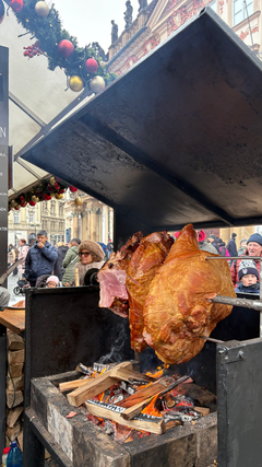 We made our way back to the city to visit 2 largest Christmas markets: At Old Town Square and Wenceslas Square. Both markets were beautifully decorated with lights, and the smell of food lingered in the cold air. We wandered between stalls with hot glühwein in hand, tried roasted ham and sausages, and the famous chimney cakes to satisfy our sweet tooth.